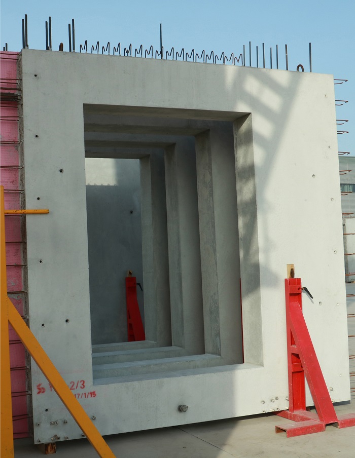 公司設有PC車間、模具車間、中心實驗室、全封閉式混凝土綠色環保攪拌站。其中,PC車間擁有4條高效節能生產線,包括墻板自動化生產線、板類構件自動化生產線、固定臺模、全自動化鋼筋加工生產線。